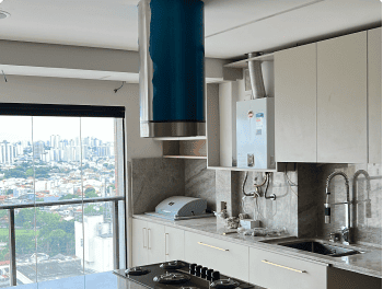 A coifa possui estilo e personalidade e a melhor opção é não tentar esconder sua presença. Muitas pessoas pensam em rebaixar o teto para esconder o duto, mas isto também não é necessário. Se o estilo da sua cozinha for mais industrial, ela encaixa perfeitamente. Caso não, existem peças com designs incríveis e que vão encantar você.